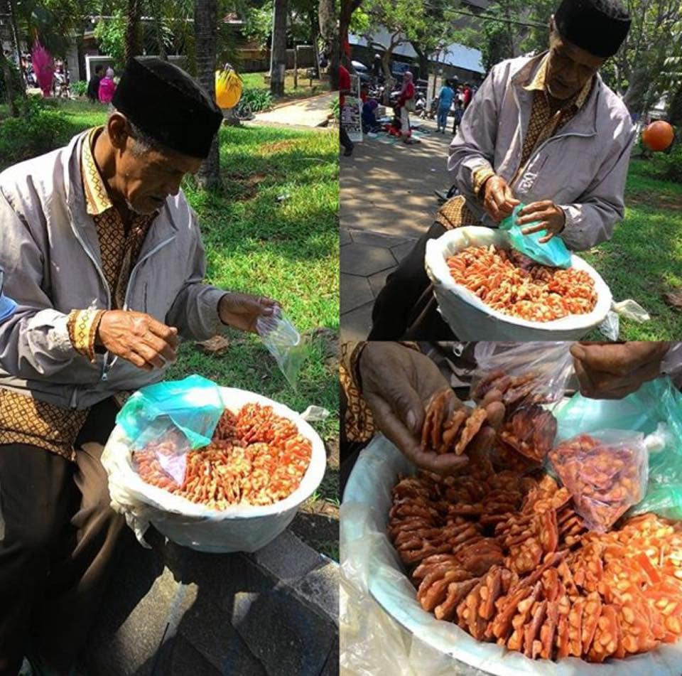 Sekitar sebulan sebelumnya, istri saya turut membantu menyebarkan foto sang bapak di Facebook disertai ajakan untuk turut membeli penganannya. Foto tersebut cukup viral dengan ribuan “share” dan “like“.